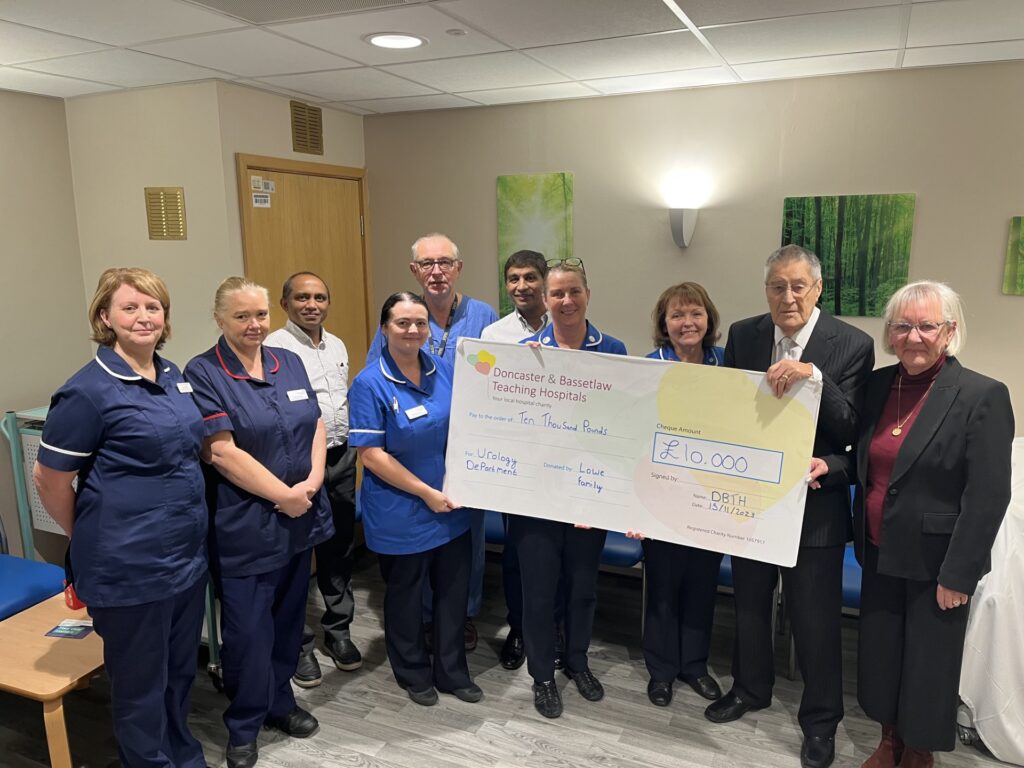 Medical and nursing staff gratefully received the cheque from Mr Lowe, who has always had strong links with Bassetlaw Hospital.