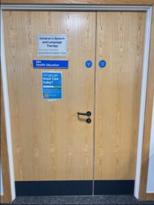 Children’s Speech and Language Therapy Room – take a seat outside the door and Speech Therapist will come out and get you.